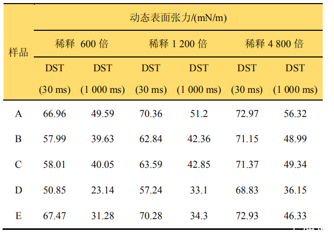 硝磺草酮懸浮劑制劑不同稀釋倍數(shù)的動態(tài)表面張力測定結果