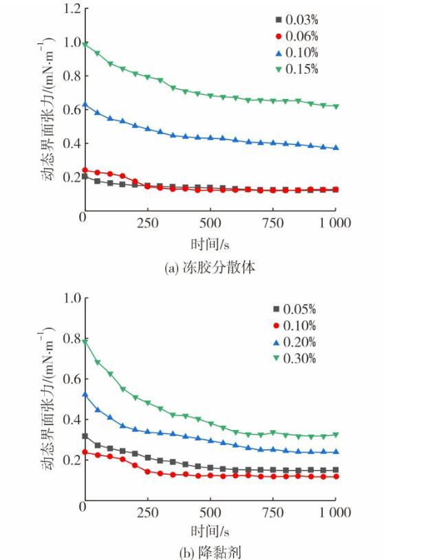 稠油冷降黏劑&采凍膠分散體調(diào)驅(qū)復(fù)配體系對(duì)其動(dòng)態(tài)界面張力的影響