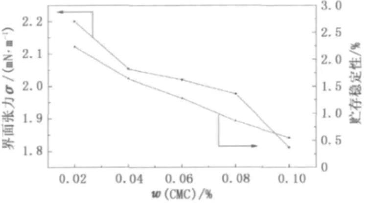 圖4羧甲基纖維素鈉對油水界面張力和貯存穩定性的影響