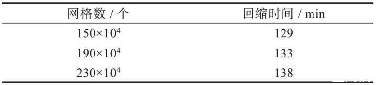 表2網(wǎng)格數(shù)與回縮時(shí)間表