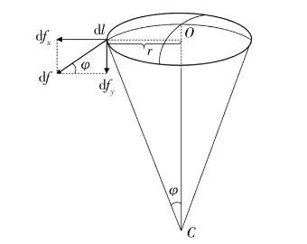 將微元dl所受表面張力分解為dfx和dfy,由于所有微元受力的水平方向dfx相抵消,而dfy方向相同.由幾何關系: