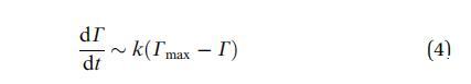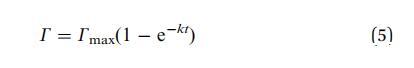當系統(tǒng)接近飽和時,G(t) 的下降必須 隨著表面變得擁擠,請減速。 的濃度 吸附在表面下方,然后失去平衡 與吸附的物種和動力學受到限制 吸附屏障。 然后一級動力學過程導致: