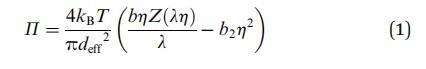 吸附在流體-流體界面上的粒子與 并產生表面壓力 (P),即 3D 系統(tǒng)中壓力的 2D 模擬。 通過擴展這個 進一步類比,也可以將這個表面壓力聯(lián)系起來 通過狀態(tài)方程到其他狀態(tài)參數(shù),如數(shù)密度和溫度。 用于吸附膠體顆粒 在流體-流體界面上,最簡單的近似可能是 2D硬盤。 狀態(tài)方程 (EOS) 為一個 組件系統(tǒng)根據密度相關性給出 壓縮系數(shù) Z。文獻中充滿了 提供表達的多種方法 EOS 2D 硬盤液。 Mulero 等人 27,28 提供了一個簡潔的 回顧和比較所有這些狀態(tài)方程。