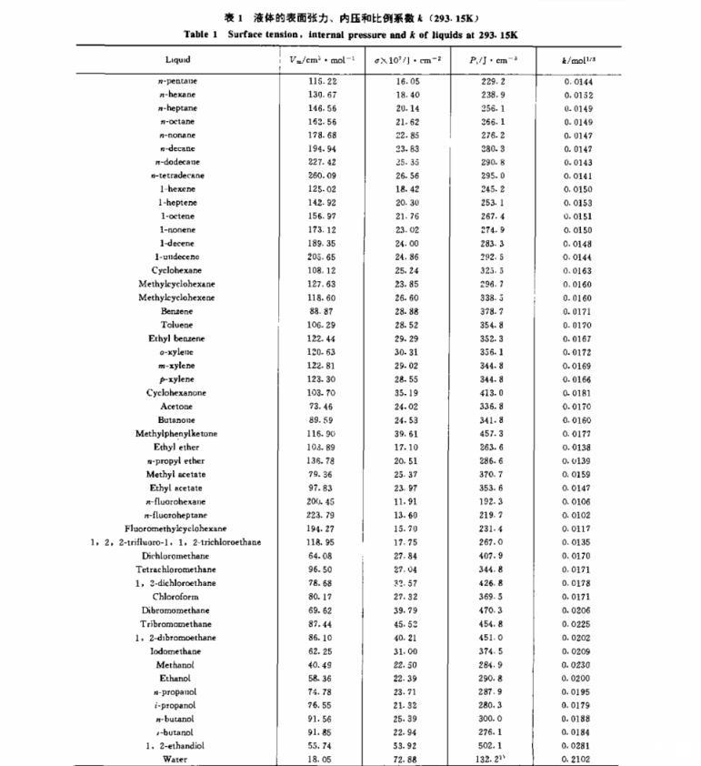 鏈烷烴的表面張力與內壓、比例、溫度的關系