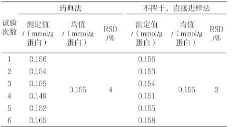 表2重復(fù)性試驗(yàn)結(jié)果(n=6)