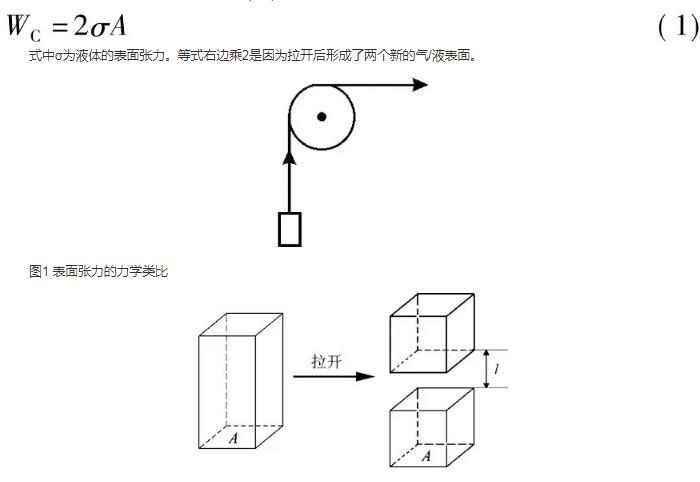 式(7)實際上就是式(5)。這就是說,將體積為V的液體從體相反抗內壓力移至表面需做的可逆功與將液體分成兩半需做的可逆功等價,都等于表面自由能2σA。