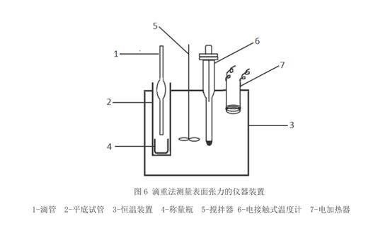 滴重法是利用液滴重量與支持它的表面張力的力相平衡進(jìn)行測(cè)定的試驗(yàn)。主要也是因?yàn)楸砻鎻埩εc液滴重量、滴管半徑、液體密度及重力加速度相關(guān)。滴重法要使用到的儀器主要玻璃滴管、恒溫裝置、平底試管、稱量瓶、攪拌器、電接觸式溫度計(jì)、電加熱器等。試驗(yàn)步驟也是先配置測(cè)定溶液,清洗測(cè)量?jī)x器,然后安裝好實(shí)驗(yàn)裝置,啟動(dòng)攪拌器,調(diào)節(jié)接觸溫度計(jì),至所需溫度,使水恒溫半小時(shí),要求普通溫度計(jì)的誤差不超過(guò)±0.5 ℃。恒溫足夠時(shí)間以消除平底試管內(nèi)與水溫的差,一般溫差小于 1 ℃。用分析天平稱得潔凈干燥的稱量瓶空瓶重。放入浸入恒溫裝置的平底試管內(nèi)。將橡皮管套于移液管的未加工端,用吸球?qū)⒋郎y(cè)液吸入移液管內(nèi),用夾子夾住橡皮管不使待測(cè)液滴下然后將移液管垂直懸掛入恒溫裝置內(nèi)的試管中,但不可與稱量瓶接觸。恒溫半小時(shí)后,慢慢旋開(kāi)夾子,讓液體自然滴下,調(diào)節(jié)水滴的下落速度至每滴 100-120 s。至20 滴時(shí)擰緊夾子,取出移液管。將稱量瓶稱重,減去空的稱量瓶重量,求得每液滴的重量。在同一溫度下重復(fù)兩次。對(duì)于表面張力能隨時(shí)間迅速變化的或者界面能夠迅速相互飽和的界面,測(cè)定精度為±0.1%。