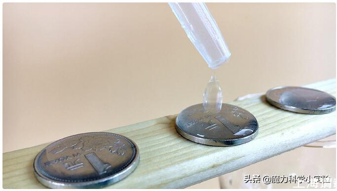 正是由于這個(gè)力,硬幣上的水滴能夠凸起來(lái),在極限值到來(lái)之前,液滴都不會(huì)倒塌。