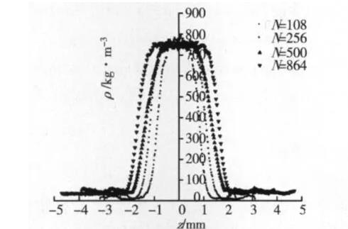 圖9水分子數對密度分布的影響