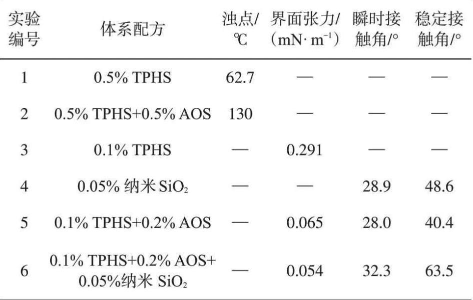 2.4 TPHS復配體系的界面活性與潤濕性
