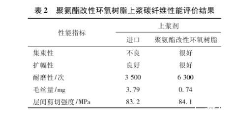 2.1聚氨酯改性環氧樹脂上漿劑對碳纖維的影響