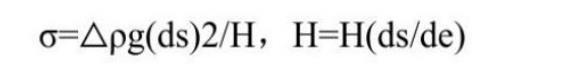 其中,de為液滴處于最大時的直徑;ds為處于de上方的直徑;密度取水的密度;g為重力加速度;