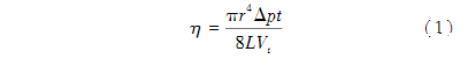 式中:r為毛細(xì)管半徑;t為液體流經(jīng)毛細(xì)管的時(shí)間;L為毛細(xì)管長度;Vt為t時(shí)間內(nèi)液體所流過的體積;Δp為液體上下液面的壓力差。毛細(xì)管黏度計(jì)使用方便,但它受剪切速率限制(一次只能測量對應(yīng)一個(gè)剪切速率的黏度),并不適合肺液體或者黏液等非牛頓液體黏度的測量。