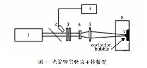 當探測光束通過靶面焦點正前方與空泡或沖擊波相互作用時將產生微小的改變,原光束傳播方向也將發生偏轉,因此耦合進光纖傳感器的光強將減小。由于光通量的變化體現為光電流或電壓的變化,因此空泡泡半徑的演變可以從數字存儲示波器上的電壓變化反映;圖2(b)為探測空泡潰滅對固壁面空蝕作用的實驗裝置。在脈沖激光作用下,靶材作用點的背面將產生微小的錐形突起,因此光束反射時相對原有反射光路要偏轉一定的角度。當探測光束照在因激光作用而形成凸起的錐形上,且光斑中心與錐心重合時,反射光束變為一環形光斑,耦合進光纖的光通量會變小。因光通量的變化體現為光電流或電壓的變化,因此靶材所受力的變化可以從數字存儲示波器上的電壓變化來反映。該光纖傳感器的相關測試原理分別見參考文獻。本實驗觸發信號由光電二極管17(上升時間100ps)獲取激光反射光來實現。