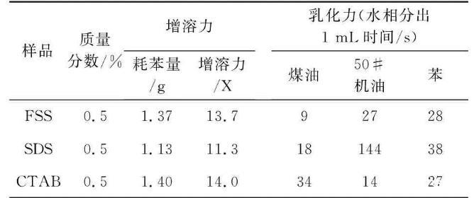 表2 FSS的乳化力和增溶力