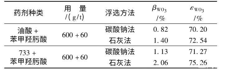 表4不同浮選方法選白鎢礦的浮選指標
