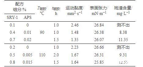 按照配方配制壓裂液,依照石油天然氣行業標準SY/T 5107—2016的方法,在指定溫度下破膠,冷卻后測定破膠液基礎數據,測試結果見表6。破膠液狀態見圖7。