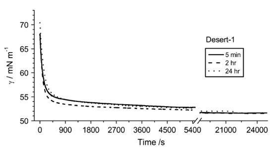 應用EZ-PIplus表面張力儀">表面張力儀測試不同時間浸潤土壤后得到的土壤浸潤液的動態表面張力