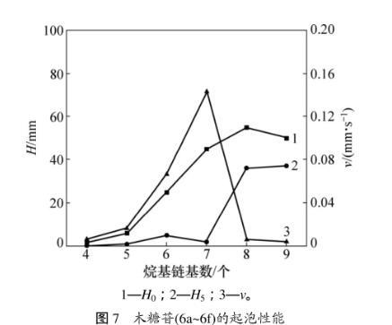 2.5烷基-β-D-吡喃木糖苷的起泡力及泡沫穩定性