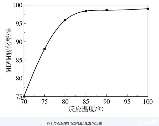 圖4反應溫度對MDHM轉化率的影響