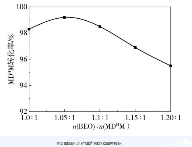 圖3原料配比對MDHM轉化率的影響