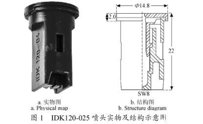 圖1 IDK120-025噴頭實(shí)物及結(jié)構(gòu)示意圖