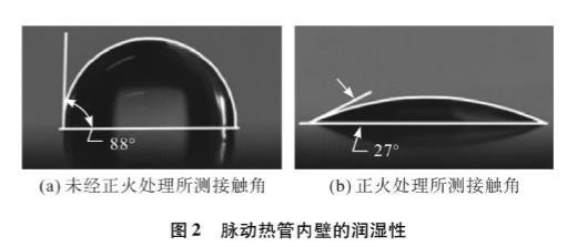 圖2脈動熱管內(nèi)壁的潤濕性
