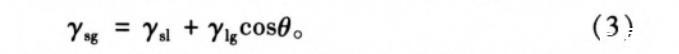 描述固氣、固液、液氣界面張力和接觸角的楊氏方程為: