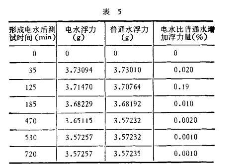 至于電水時(shí)間效應(yīng)的機(jī)理問題,特別是浮力變化大的范圍和緩慢變化范圍和水分子及水中雜質(zhì)儲(chǔ)能的時(shí)間長(zhǎng)短有何關(guān)系,還需要從實(shí)驗(yàn)和理論上進(jìn)一步研究。