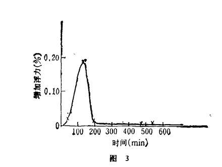 測(cè)試條件:水流速v=0.745m/s;水溫T=18.0±0.3℃;電場(chǎng)頻率3.5MHz;用長(zhǎng)春市自來水。測(cè)試時(shí)間為1984年9月21日。電水的浮力和時(shí)間關(guān)系見圖3。