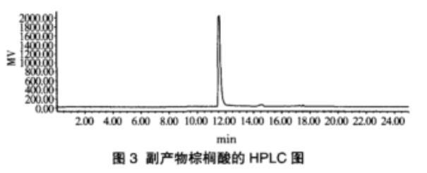 圖1為提純后最終產品的HPLC圖,圖2為原料天冬氨酸的液相色譜圖,圖3為副產物棕櫚酸的液相色譜圖。