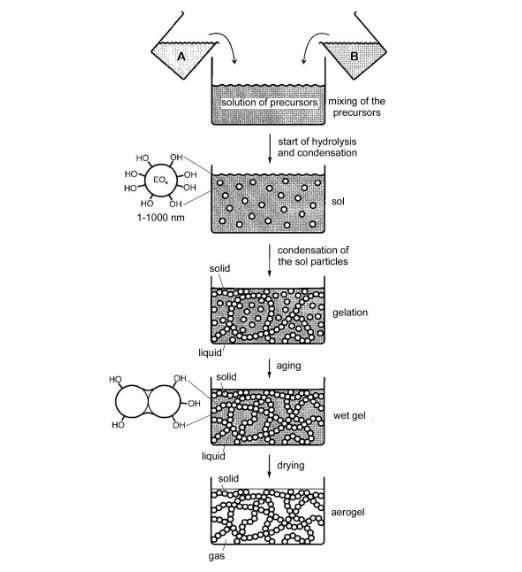 圖3氧化硅氣凝膠溶膠~凝膠法的制備過程