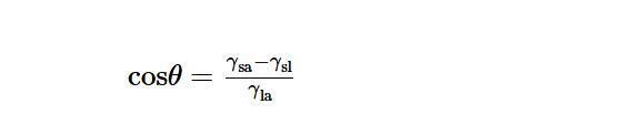 在由顆粒穩(wěn)定的泡沫中,氣泡表面存在不可逆吸附的顆粒層,可以起到抵抗聚結(jié)和粗化的物理屏障作用。顆粒必須首先吸附到表面上才能實(shí)現(xiàn)穩(wěn)定泡沫的功能。通常認(rèn)為,顆粒在空氣/液體表面的吸附與顆粒的潤濕性相關(guān),該潤濕性通過顆粒與空氣/液體界面的接觸角來量化,可由楊氏方程計(jì)算得到: