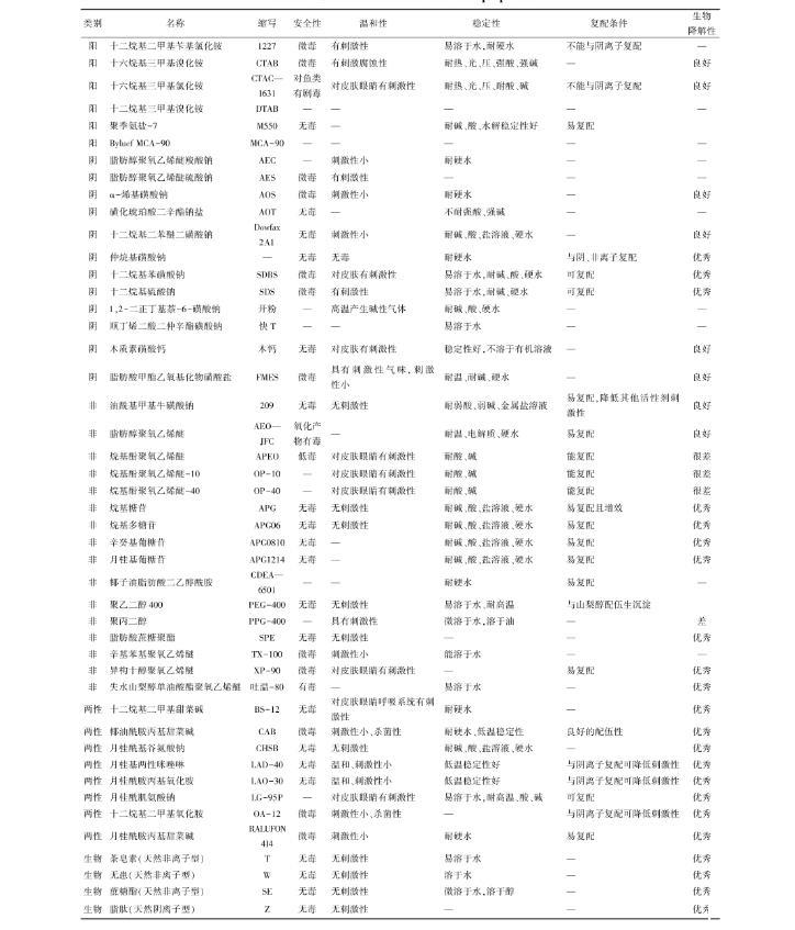表1常見表面活性劑及其性質(zhì)