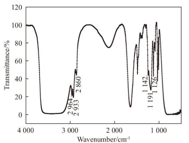 圖2為DL-5紅外光譜圖,由圖中可以看出,1 126和1 190 cm-1處是磺酸基的特征吸收峰;2 964,2 933,2 860 cm-1為-CH3與-CH2的特征吸收峰;1 242 cm-1為二苯醚醚鍵的特征吸收峰,說明產物為烷基二苯醚/烷基苯混合磺酸鹽。