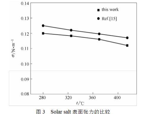 圖3 Solar salt表面張力的比較