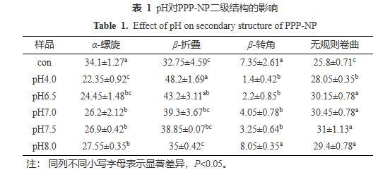 2.3 pH對(duì)PPP-NP二級(jí)結(jié)構(gòu)的影響