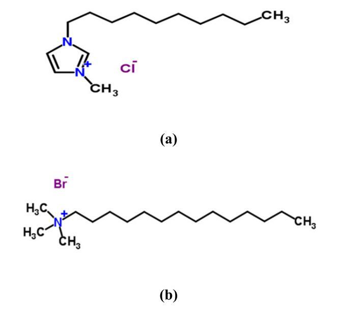 離子液體,特別是室溫離子液體,由于其許多獨特的性質,包括可忽略的蒸汽壓,作為有毒溶劑、電化學的替代品和環境友好的替代品,以及在化學工業中用作反應介質,目前正受到極大的關注[1,2]。離子液體特別是表面活性離子液體(SAIL)在性質上是兩親性的,因為它們的分子中既有親水部分,也有疏水部分,因此它們表現出良好的表面/界面活性和膠束形成。在許多研究中,傳統的表面活性劑與離子液體混合,表面活性劑在這些離子液體中的聚集方式與在水中的聚集方式類似,但存在一些差異。第一個區別是,大多數純離子液體的表面張力低于純水的表面張力。第二個區別是,離子液體中表面活性劑的cmc大于純水中的cmc,原因可能是與純水中表面活性劑的疏水相互作用相比,離子液體中表面活性劑之間的疏水相互作用較低[3–6]。在一些研究中,水性離子液體被用作表面活性劑溶液的溶劑[7–13]。在大多數研究中,表面活性劑的cmc取決于離子液體的濃度。還觀察到,在離子液體濃度較低時,cmc呈下降趨勢,而在較高濃度時,cmc表現出增加的行為[8–9]。最近報道了1-烷基-3-甲基咪唑溴化離子液體對大型水蚤的毒性和抗氧化防御系統活性,主要歸因于高濃度的離子液體[14]及其在斑馬魚氧化應激和DNA損傷中的作用[15]。同樣,也對大鼠的亞慢性毒性進行了研究[16],但只有少數研究報告了毒性作用。