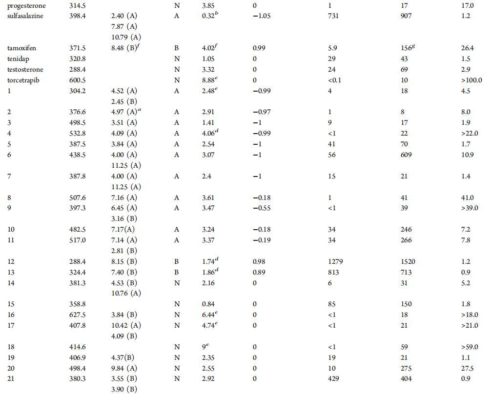 表1。51種化合物的理化性質(zhì)和溶解度數(shù)據(jù);除非另有說明,否則數(shù)據(jù)按實驗部分所述生成