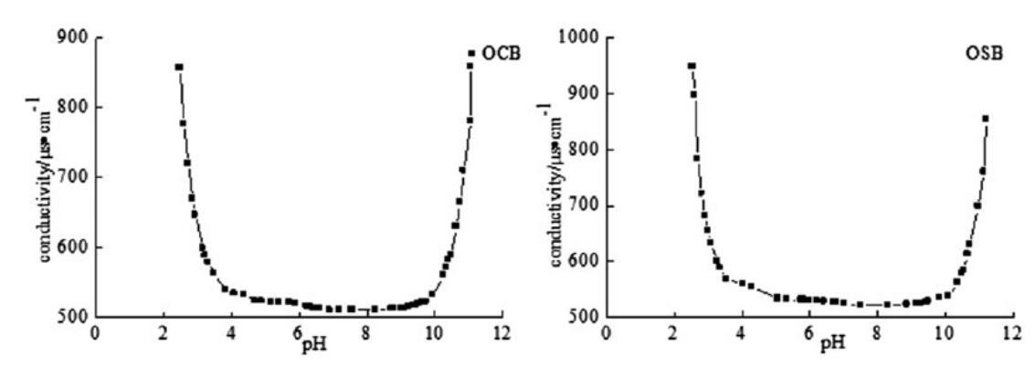 圖4。OCB和OSB在25℃時的pH電導率曲線。