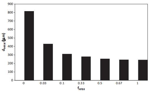 圖8給出了以與圖3相同的HFBII:WPI比率制備的兩種泡沫的初始氣泡尺寸。最重要的觀察結果是,少量HFBII(來自fHFBII 0.03)在很大程度上影響泡沫的初始氣泡尺寸。此外,似乎從WPI主導向HFBII主導的行為轉變發生在fHFBII~=0.2,對應于朗繆爾槽中吸附層中觀察到的轉變(圖6)。
