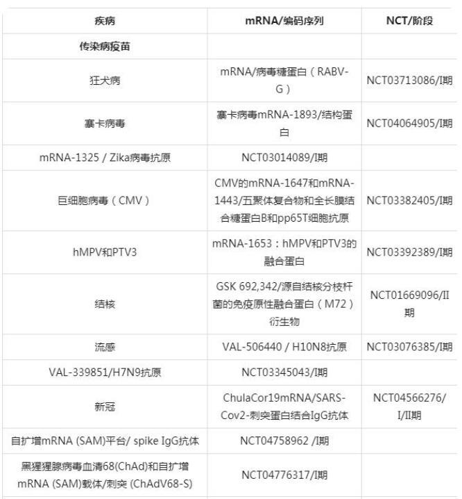 表2臨床試驗中的脂質納米粒mRNA藥物和疫苗