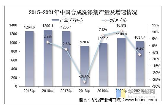 2015-2021年中國合成洗滌劑產量及增速情況