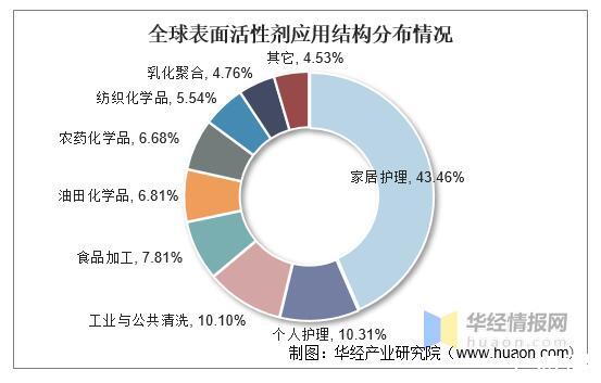 全球表面活性劑應用結構分布情況