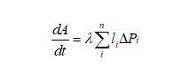 下面我們推導(dǎo)二維泡沫的演變方程,由于任一氣泡跟周圍氣泡的氣體交換都是通過氣泡邊界進(jìn)行的,則氣泡體積(二維氣泡用面積表示)隨時間的變化率跟邊界長度和邊界上的壓強(qiáng)差都有關(guān)系,可以表示為