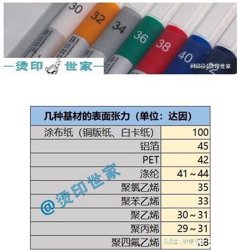 燙印對于承印基材的達因值要求: