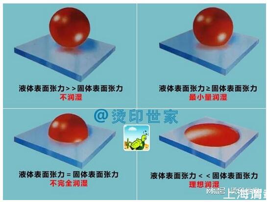 從上表中可以看出,為什么白卡紙上的燙印效果要比復合卡紙好,因為白卡紙上的表面張力大。