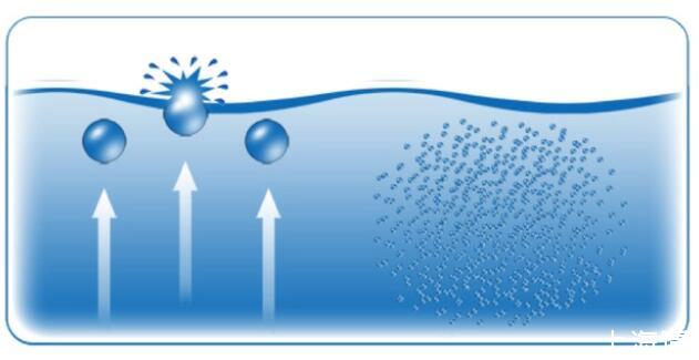 理論上氣泡形成消耗能量依賴于界面面積,界面面積決定于氣泡表面張力。直徑小于25微米的小氣泡表面剛性強,類似于高壓氣球,不容易破裂。數(shù)毫米直徑的大氣泡表面比較柔軟,很容易變形破裂。大氣泡的浮力比較大很容易上升到液面。Stokes公式R=ρgd2/18μ(ρ=密度,g=重力加速度,d=氣泡直徑,μ=粘滯度)可計算氣泡上浮速度。氣泡上漂浮速度和氣泡直徑的平方成正比,這種關系只使用于小氣泡。直徑大于2毫米的大氣泡由于外形發(fā)生變化,上升速度并不會受直徑影響。低于1微米的納米氣泡上升速度非常慢,遠低于布朗運動,整體上表現(xiàn)為不上升。