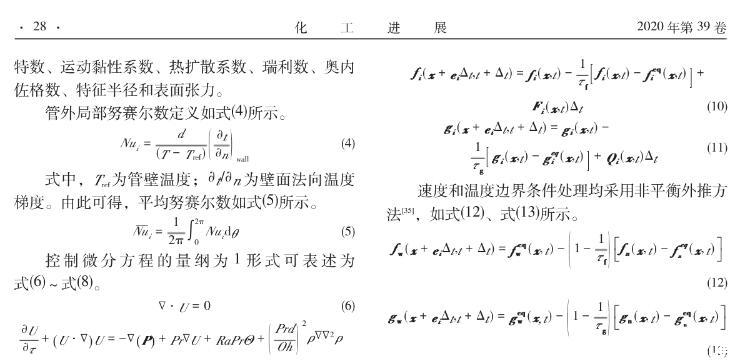 【摘要】:采用格子-玻爾茲曼方法 (LBM)構建了考慮表面張力影響下封閉腔體內加熱圓柱外自然對流數學模型。在分別對自然對流與表面張力模型模擬驗證的基礎上,探究了液固表面張力與重力場下浮升力同時作用下加熱圓柱外流體自然對流的傳熱特性。結果表明,在給定Ra數下(103≤Ra≤106),隨著表面張力的增大(Oh數減小),封閉腔體內管外自然對流擾動會加劇,流型會變復雜,壁面換熱效率有明顯提高。