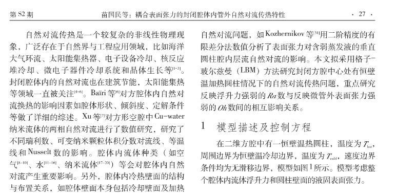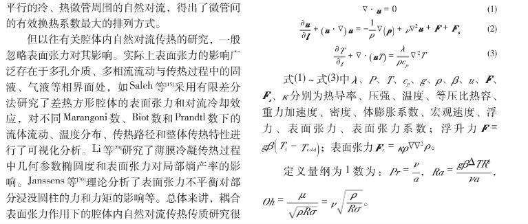 耦合表面張力的封閉腔體內管外自然對流傳熱特性